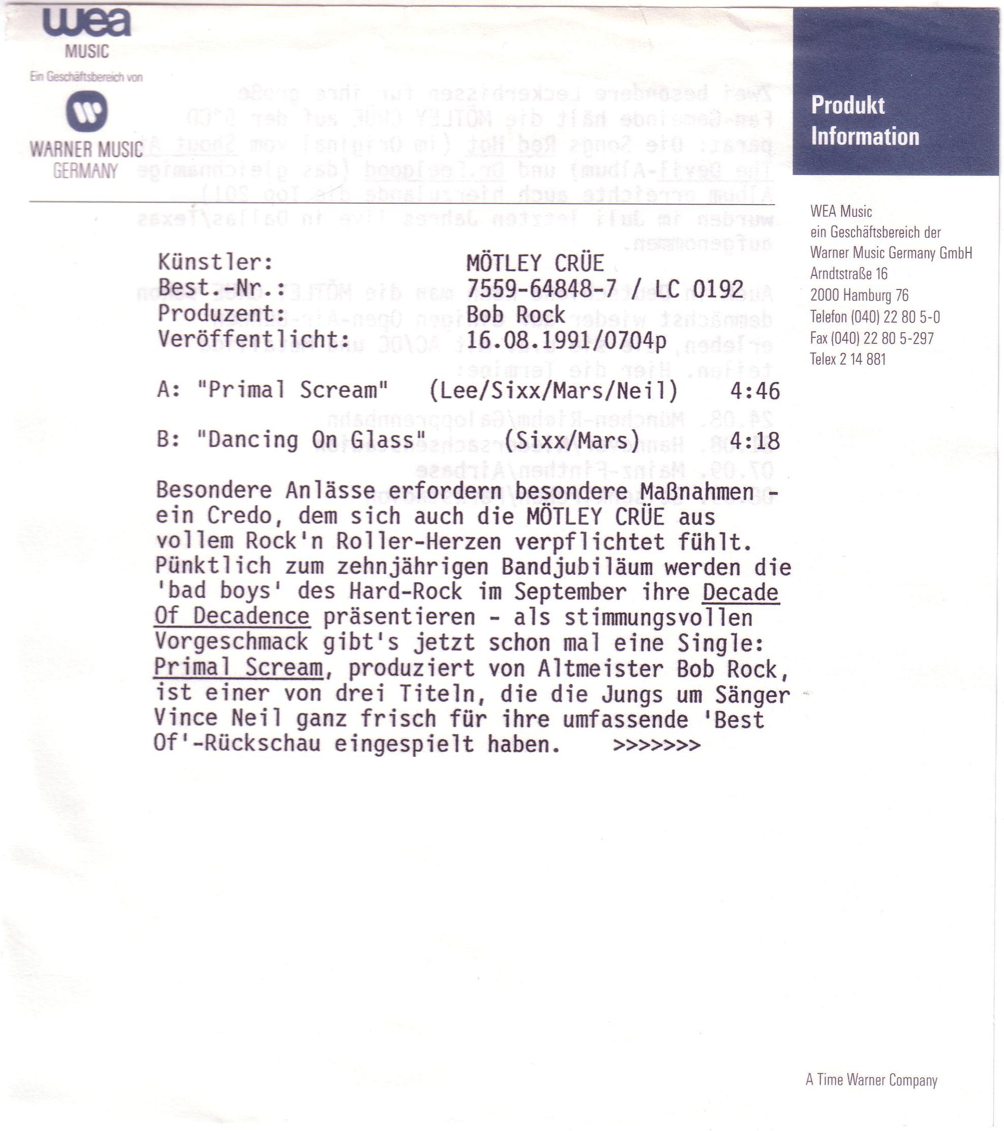 Single inglés con 2 canciones. Es el mismo que el anterior pero firmado por Nikki Sixx