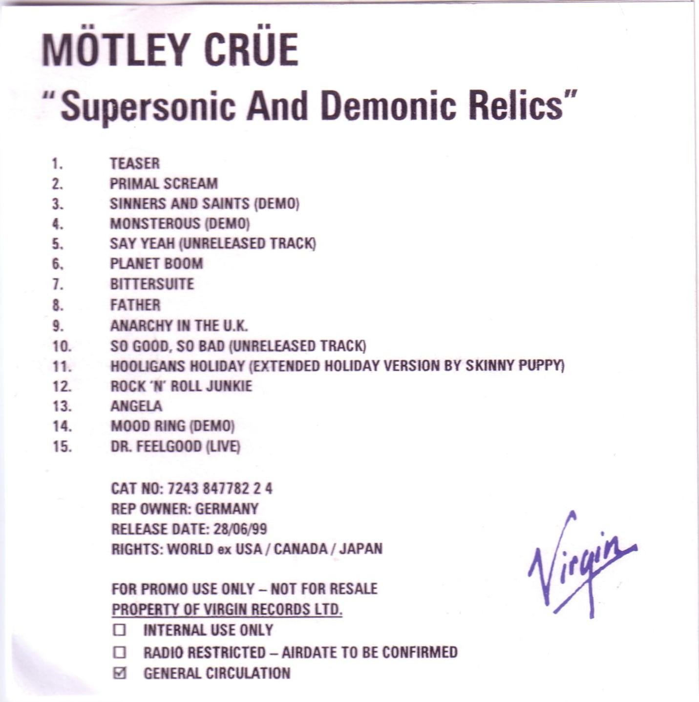 CD EU 01 (7243 8 44782 2 4) 1999 Crucial Crue. Virgin Edición europea de 1999 Crucial Crue con 15 canciones. |