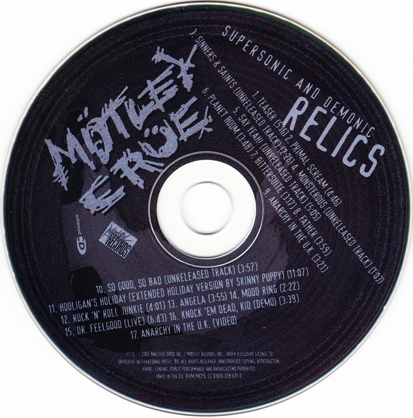 CD UK 01 promo V1. Universal Edición promocional inglesa de la compañía Universal. Tiene 16 canciones + video Anarchy in the UK. |