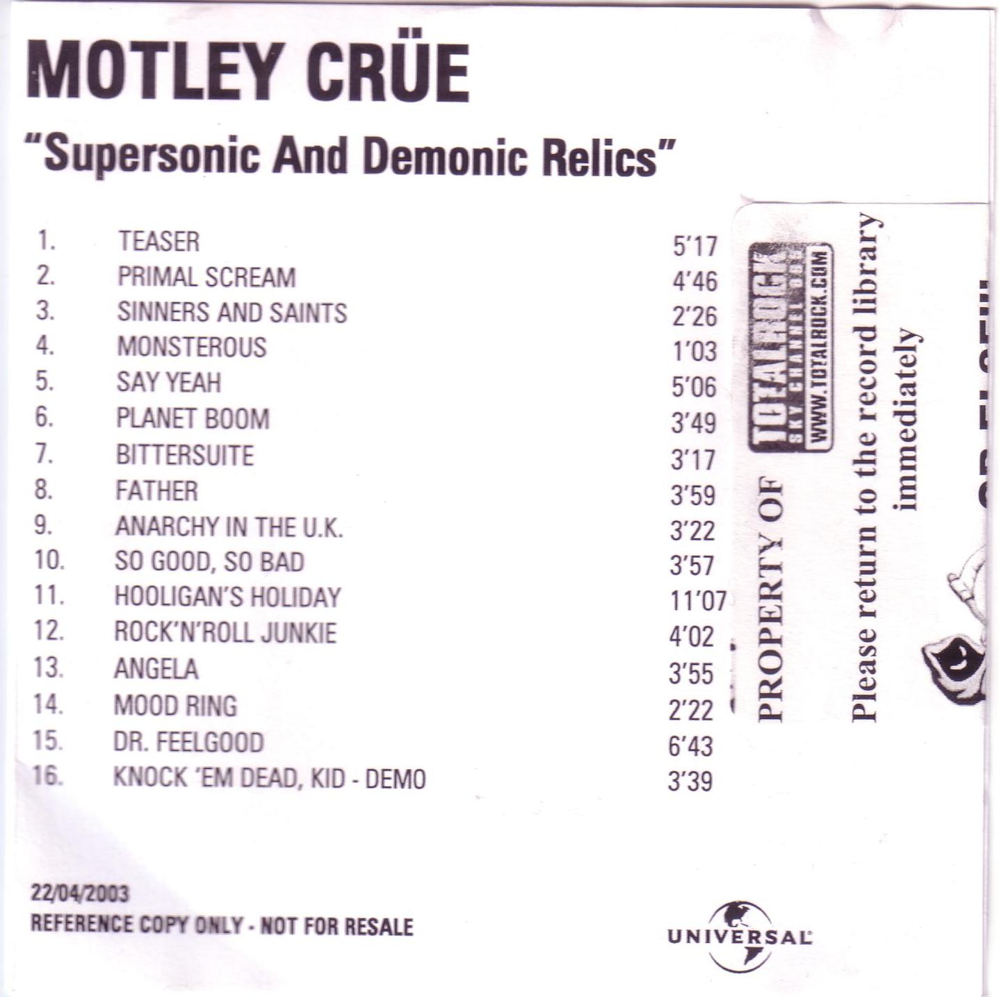 CD UK 02 promo V2. Universal Edición promocional inglesa de la compañía Universal. Tiene 16 canciones. |