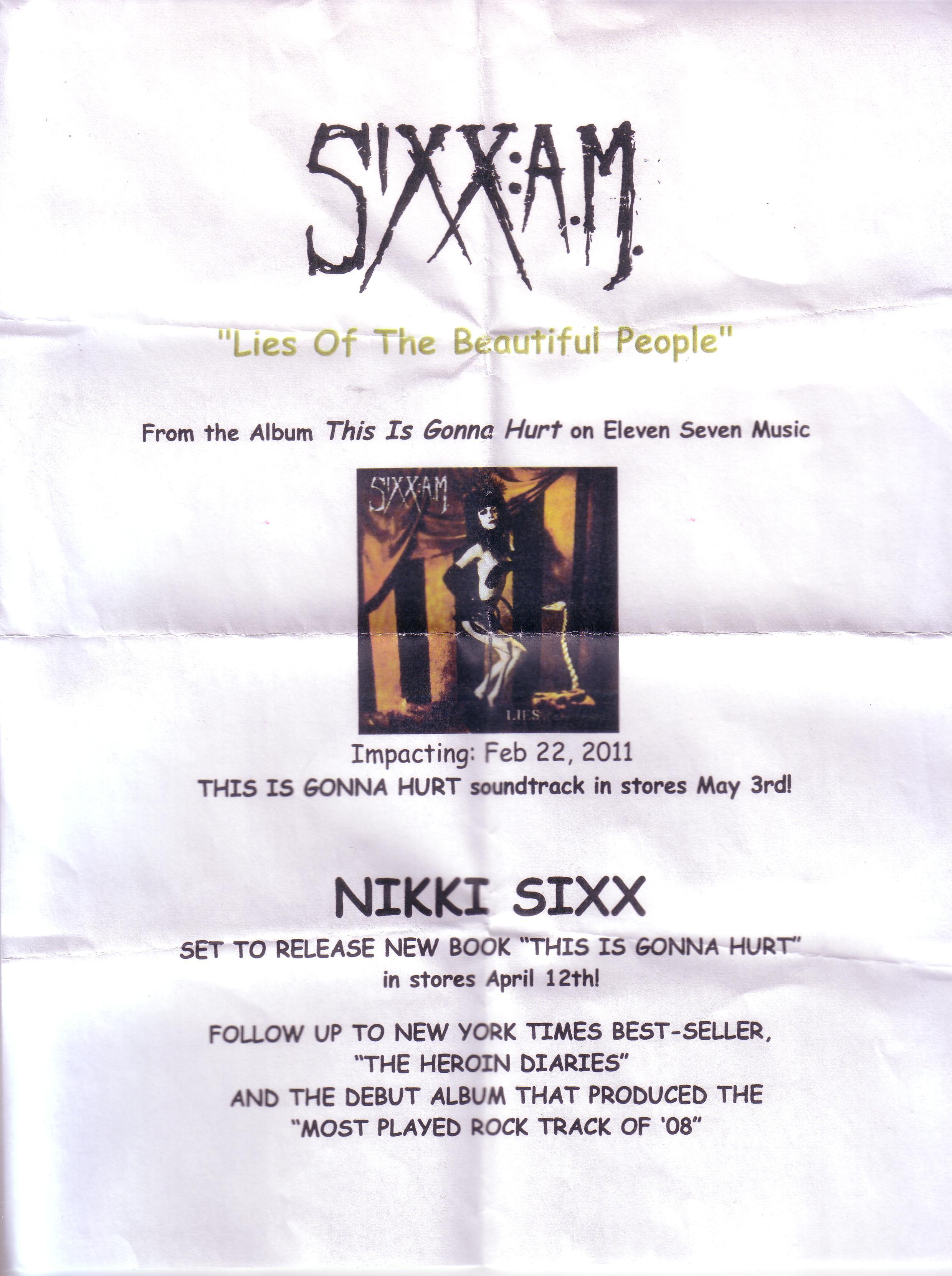 El segundo disco de Nikki con SIXX AM se titula "This is gonna hurt" y se publicó el 3 de mayo de 2011.